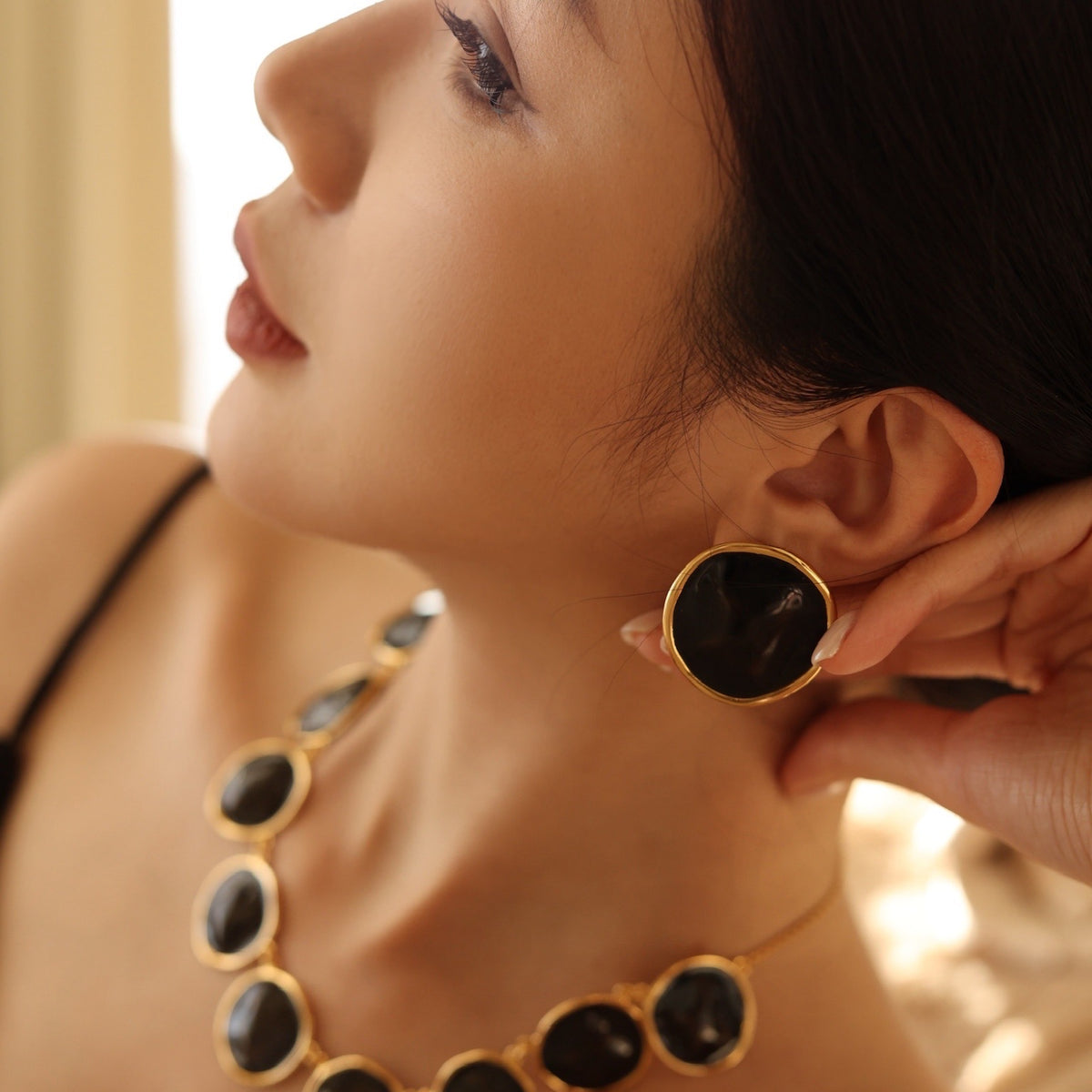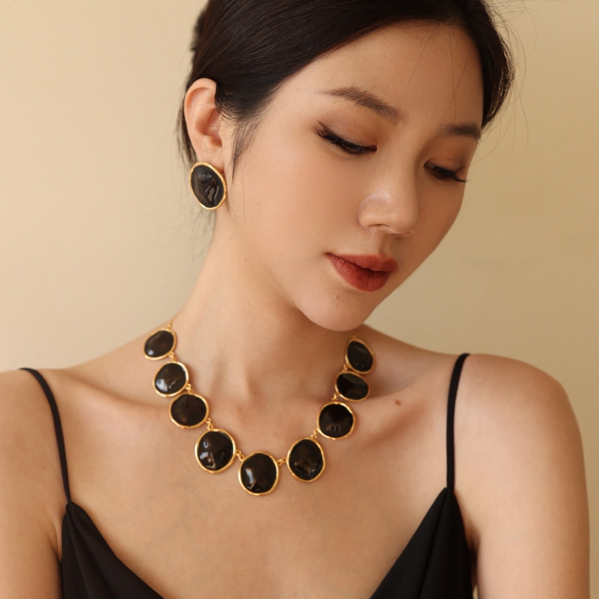 Be the first to review “Black Enamel Ripple Earrings”