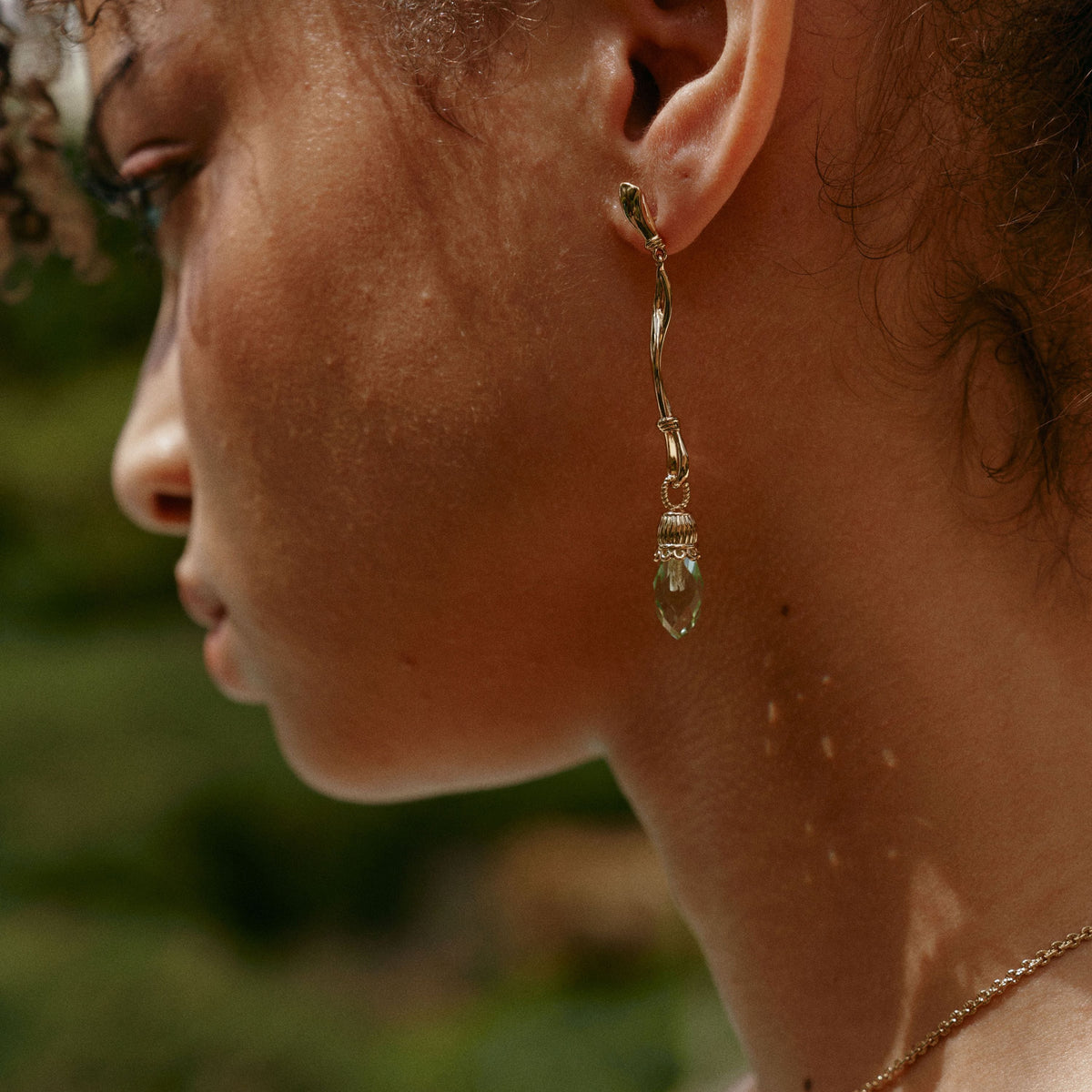 Brand: Retrochic Collection: Garden of Eden Size: 2.36″ tall Gold-plated copper + glass All metals are lead-free, nickel-free and hypoallergenic.